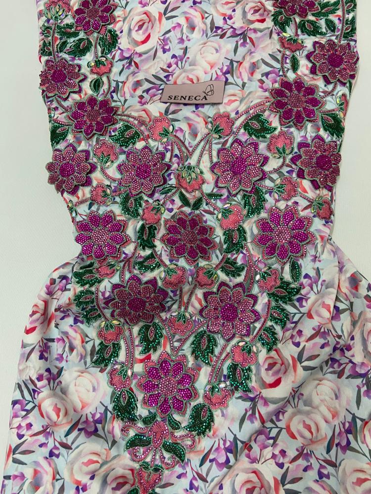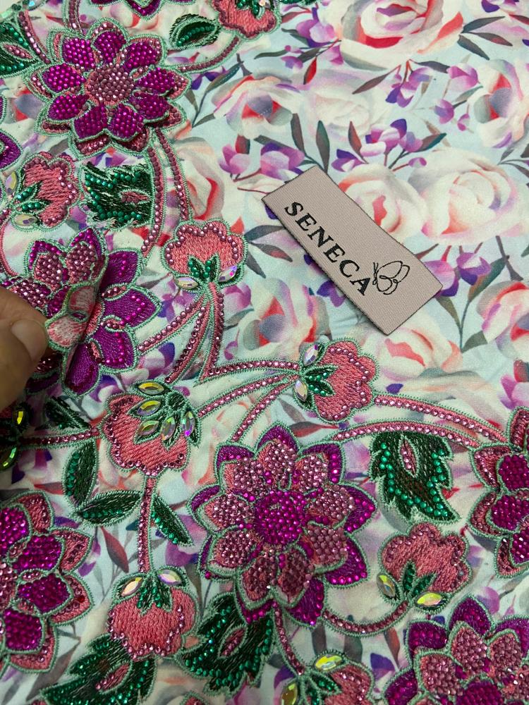 امنحي إطلالتك لمسة من الفخامة الإماراتية الأصيلة مع مخور مميز مصنوع من أجود أنواع الحرير الألماني الفاخر. يتميز القماش بنعومته الاستثنائية وتفاصيله المتقنة من تطريزات 3D أنيقة وفخمة، مرصعة بكرستالات سواروفسكي براقة تضيف إشراقة لافتة على منطقة الصدر والأكمام.