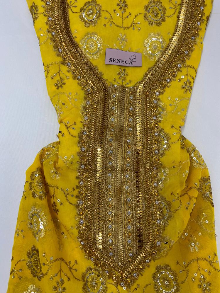 - مخور شيفون عماني مطرّز بالكامل مع لمسات فاخرة على الصدر والأكمام.
